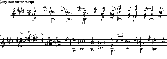 Mongolian Folksong, Threnody, Spooky Blues and Juicy Fruit Shuffle are recorded by the Composer on
